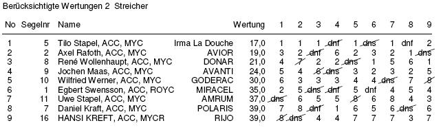 Jede Yacht erhielt die Punkte für den ersegelten Platz mit einer Streichung |